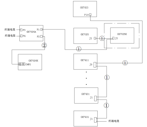 圖3 立柜/琴臺(tái)CAN總線接線圖