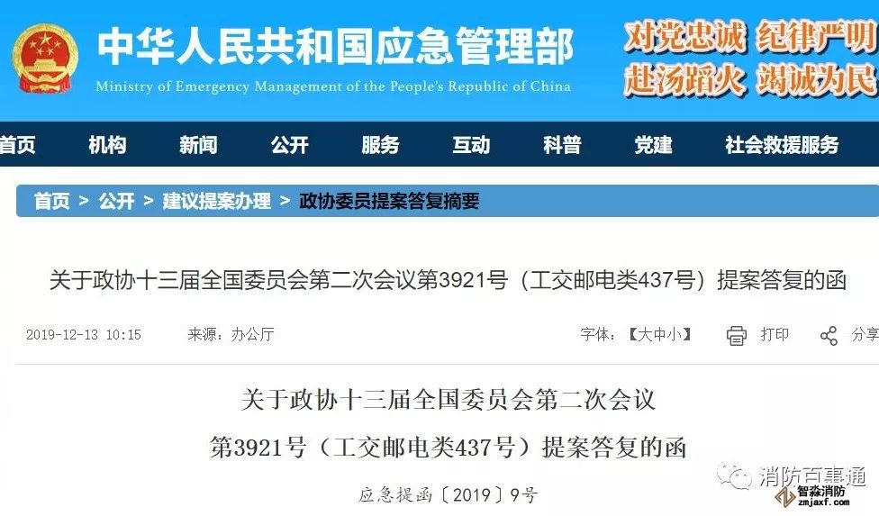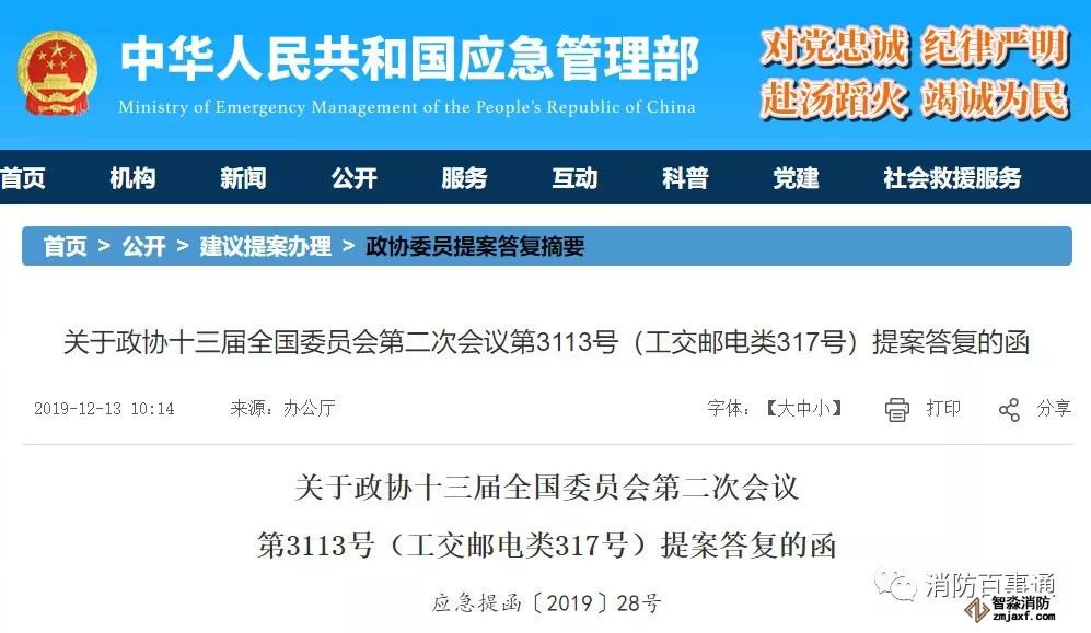 應急管理部:關于高層建筑消防安全、智慧消防建設提案答復函