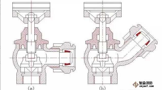 室內(nèi)消火栓是具有內(nèi)扣式接頭的球形閥式龍頭,有單出口和雙出口之分。一般情況下推薦單出口消火栓。消火栓口徑有DN50和DN65兩種,前者用于2.5~5L/s,后者用于每支水槍最小流量大于等于5L/s。進(jìn)水口端與消防立管相連接,出水口端與水帶相連接。高層建筑室內(nèi)消火栓口徑應(yīng)選DN65。