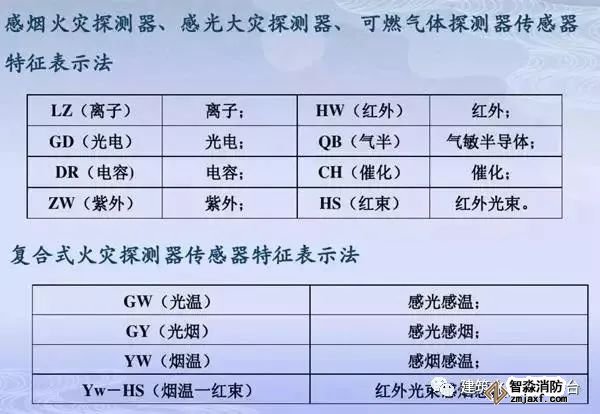 火災(zāi)探測器、報警器特征表示法: