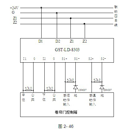 GST-LD-8303海灣卷簾門兩步降消防模塊安裝接線示意