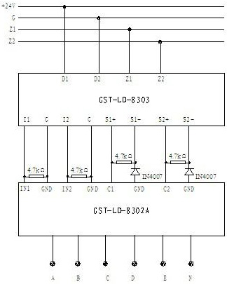 圖8 GST-LD-8301模塊接線示意圖