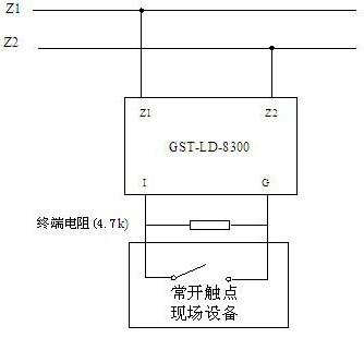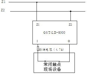 Z1、Z2:接火災(zāi)報(bào)警控制器信號(hào)二總線,無極性