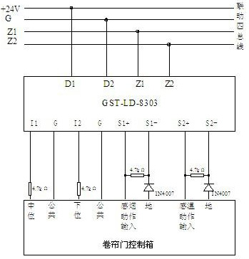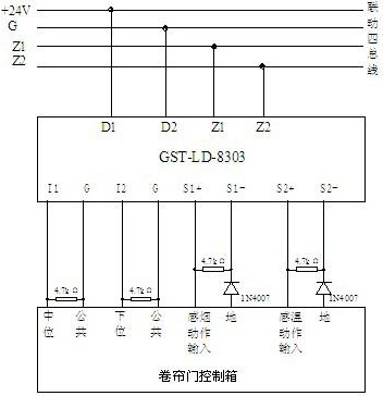 圖13 GST-LD-8303模塊與防火卷簾門電氣控制箱(標(biāo)準(zhǔn)型)接線示意圖