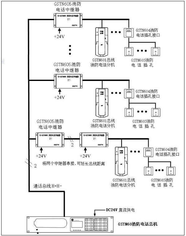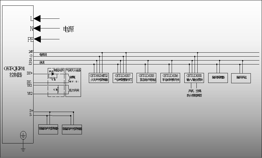 2.各類火災(zāi)探測器與各類聯(lián)動模塊可以任意接入同一總線回路