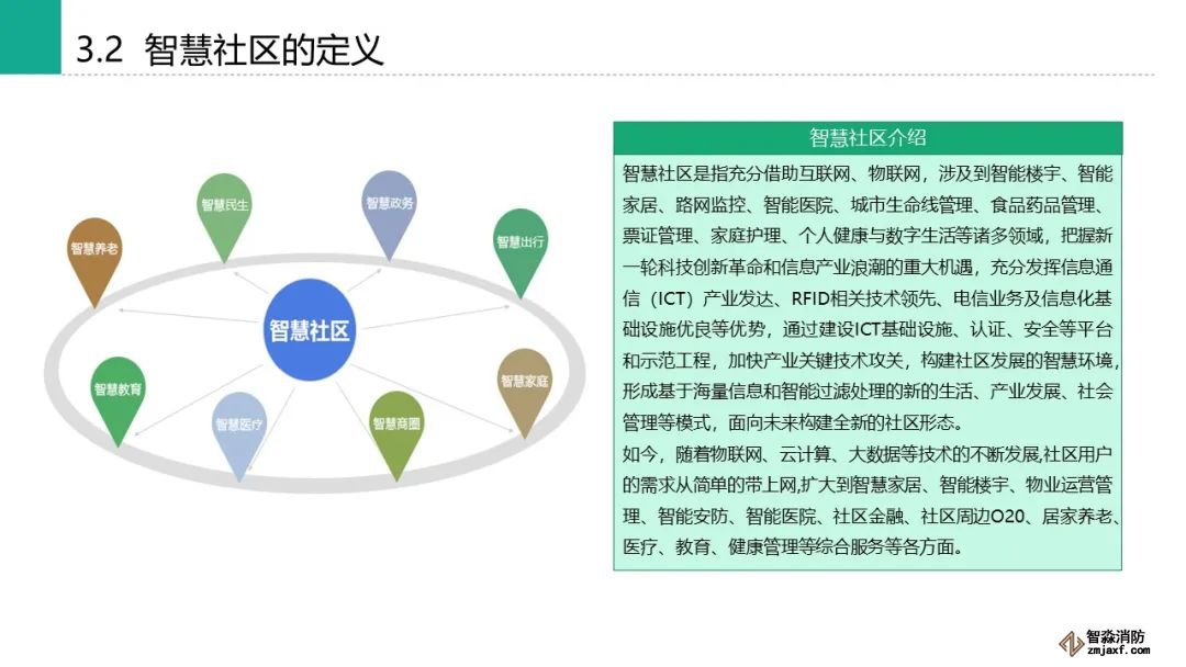 智慧社區(qū)是指充分借助互聯(lián)網(wǎng)、物聯(lián)網(wǎng),涉及到智能樓宇、智能家居、路網(wǎng)監(jiān)控、智能醫(yī)院、城市生命線管理、食品藥品管理、票證管理、家庭護(hù)理、個(gè)人健康與數(shù)字生活等諸多領(lǐng)域,把握新一輪科技創(chuàng)新革命和信息產(chǎn)業(yè)浪潮的重大機(jī)遇,充分發(fā)揮信息通信(ICT)產(chǎn)業(yè)發(fā)達(dá)、RFID相關(guān)技術(shù)領(lǐng)先、電信業(yè)務(wù)及信息化基礎(chǔ)設(shè)施優(yōu)良等優(yōu)勢(shì),通過建設(shè)ICT基礎(chǔ)設(shè)施、認(rèn)證、安全等平臺(tái)和示范工程,加快產(chǎn)業(yè)關(guān)鍵技術(shù)攻關(guān),構(gòu)建社區(qū)發(fā)展的智慧環(huán)境,形成基于海量信息和智能過濾處理的新的生活、產(chǎn)業(yè)發(fā)展、社會(huì)管理等模式,面向未來構(gòu)建全新的社區(qū)形態(tài)。