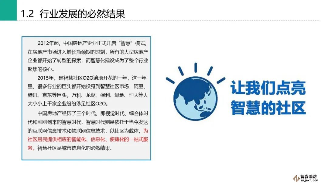 大家好,我是海灣消防。中國(guó)房地產(chǎn)經(jīng)歷了三個(gè)時(shí)代,即視覺時(shí)代、綜合體時(shí)代和剛剛到來的智慧時(shí)代,智慧時(shí)代則是依托于當(dāng)今發(fā)達(dá)的互聯(lián)網(wǎng)信息技術(shù)和物聯(lián)網(wǎng)信息技術(shù),以社區(qū)為載體,為社區(qū)居民提供相應(yīng)的智能化、信息化、便捷化的一站式服務(wù)。智慧社區(qū)是城市信息化的必然結(jié)果。