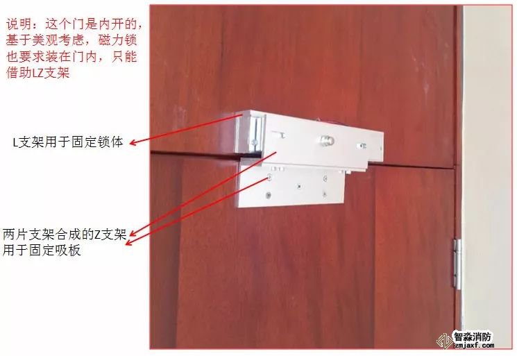 有時(shí)內(nèi)開門,因?yàn)槊烙^上的考慮,不希望鎖裝在外面,這時(shí)只能借助LZ支架輔助安裝。